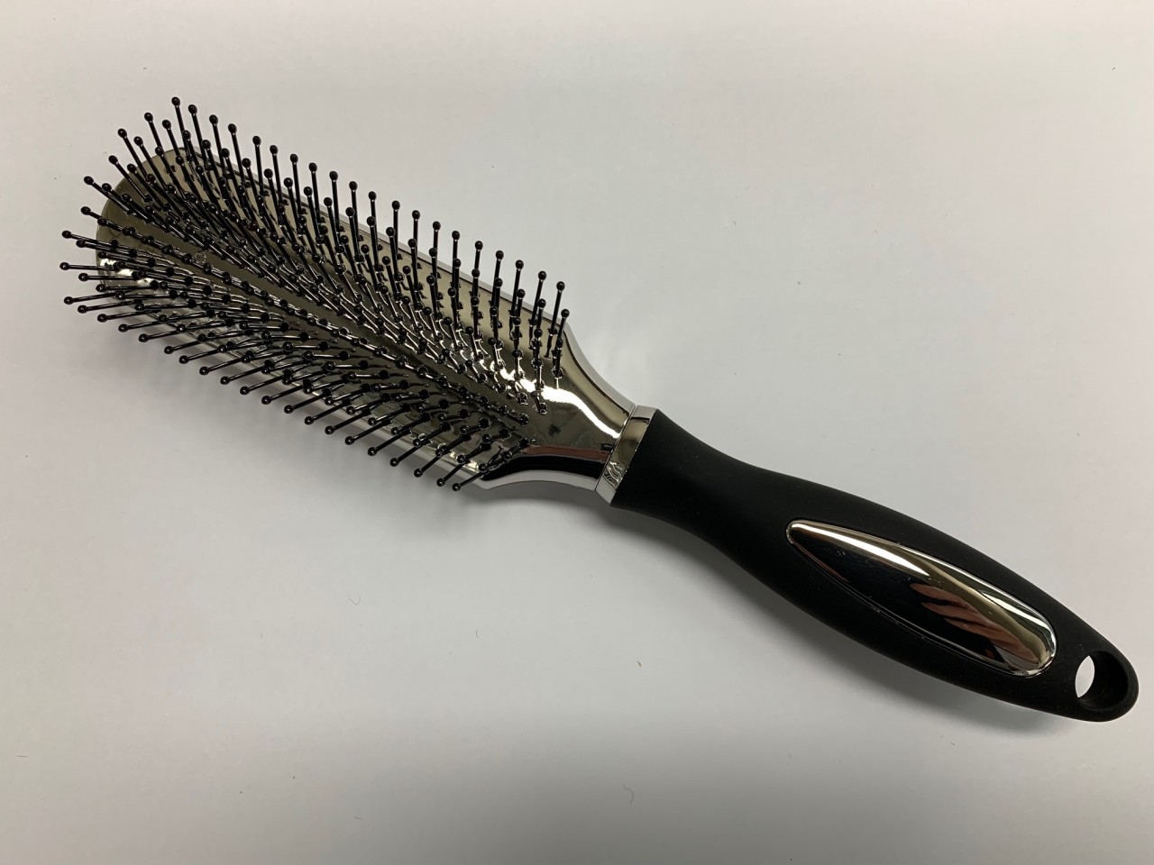 PLASTIC STYLING BRUSHVACUUM PLATED COLOR FINISHWITH BLACK COLOR BALLS ON THE END OF BRISTLESRUBBERIZED COATING SOFT TOUCH FINISH HANDLE